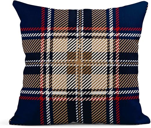 Amazon Com Tarolo Throw Pillow Covers Red Plaid Blue Tartan Pattern British Traditional Scottish Vintage Linen Cushion Cases Home Decorative Pillowcases 18 X 18 Inches Home Kitchen
